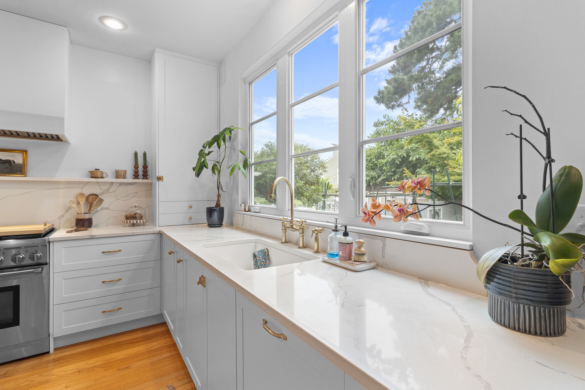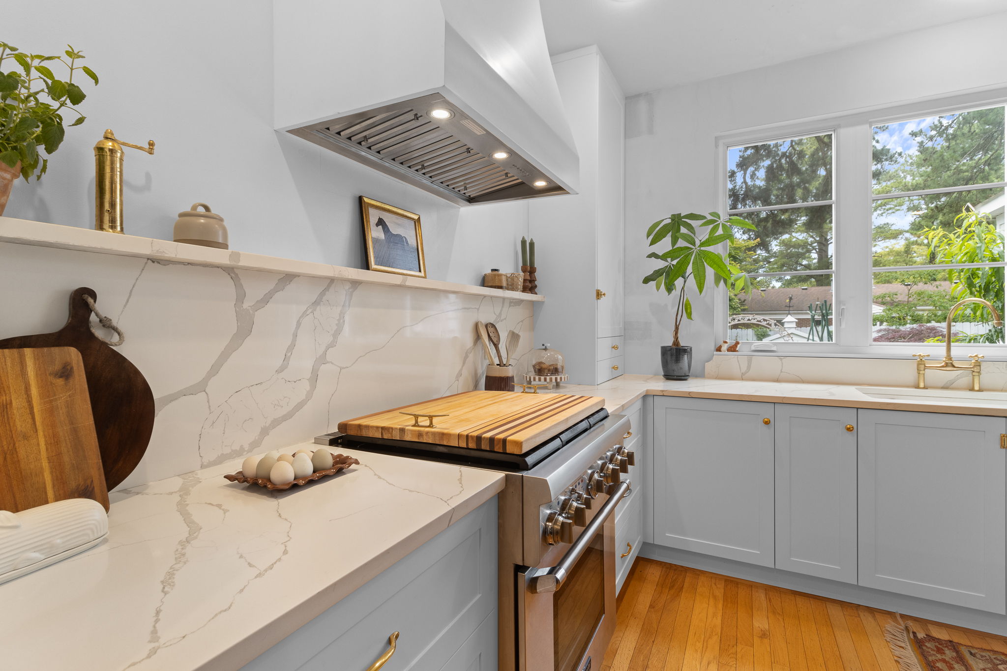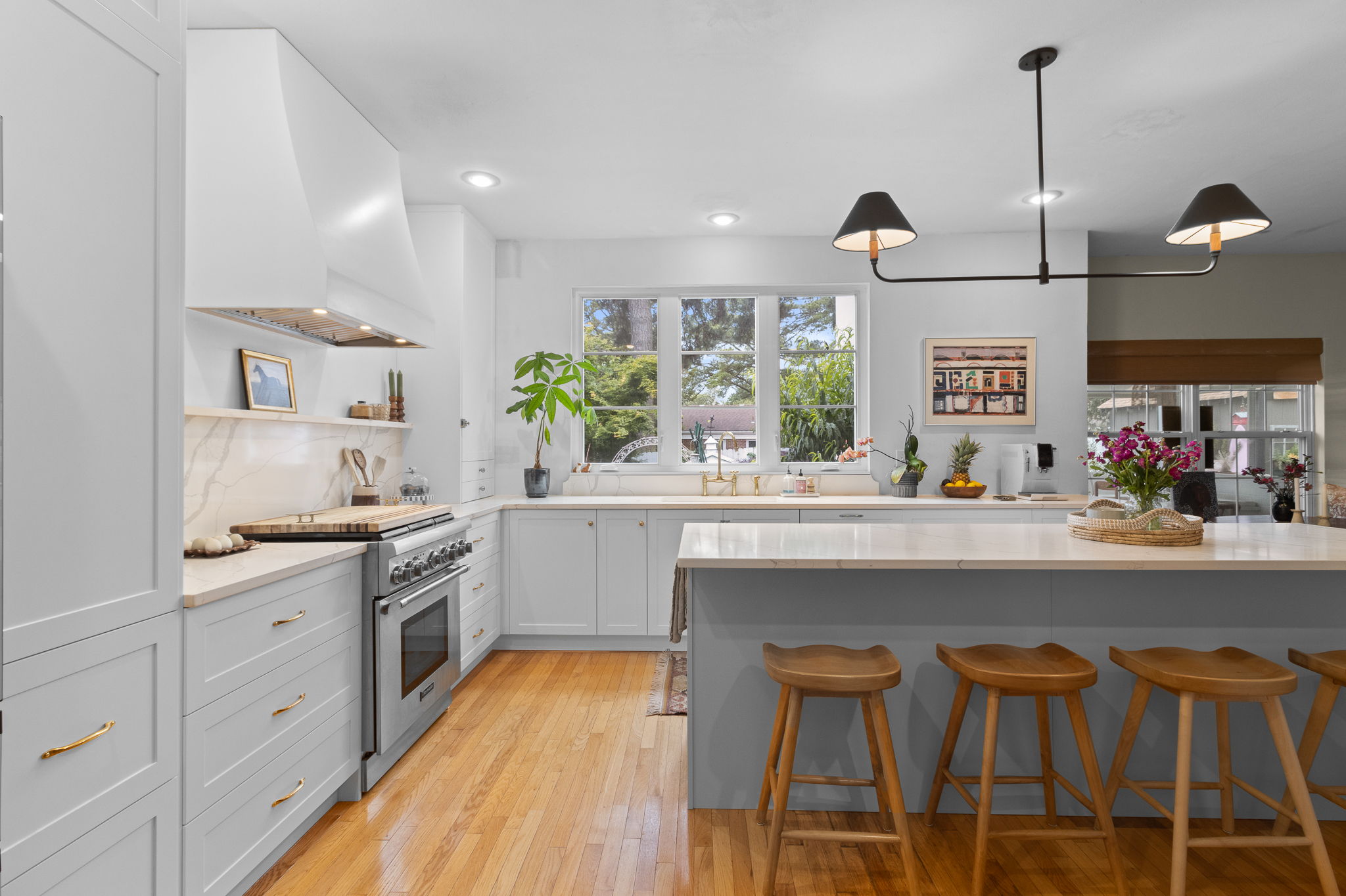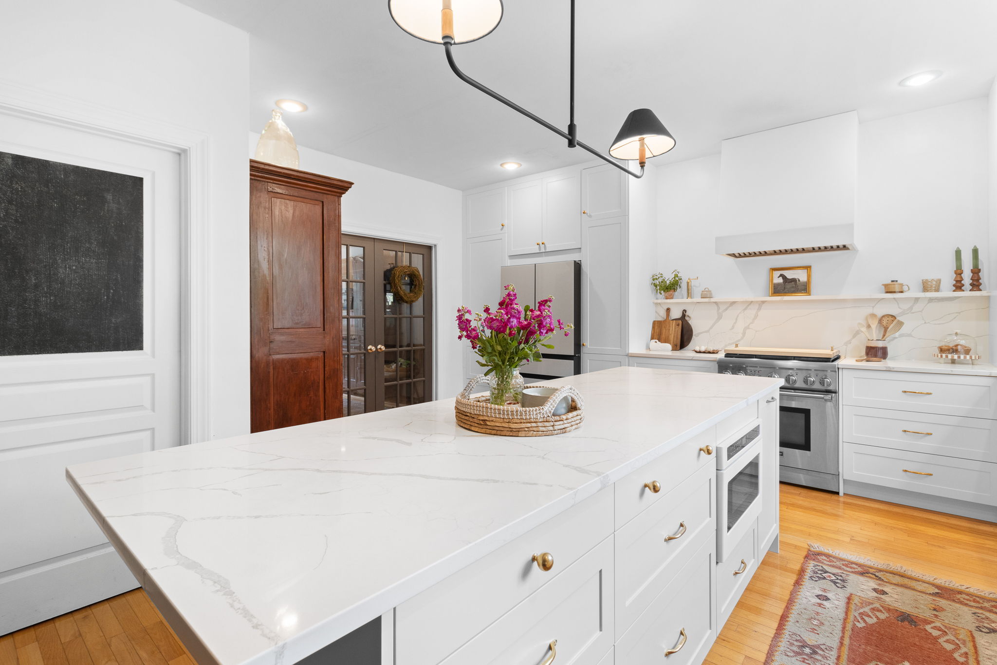 Our COEN doors in the elegant Simply White finish have completely transformed this Virginia Beach kitchen into a modern masterpiece!