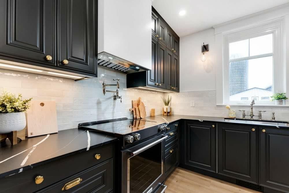 This project was designed and completed by Ashley Izsak using our HEDDA cabinet doors in bold Anthracite.