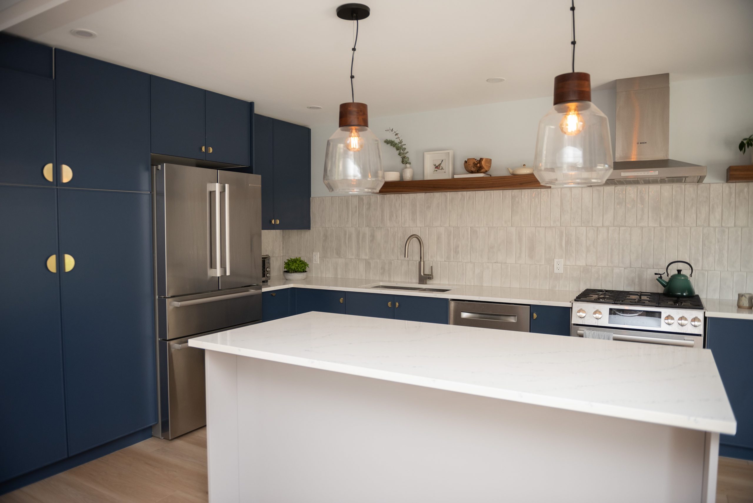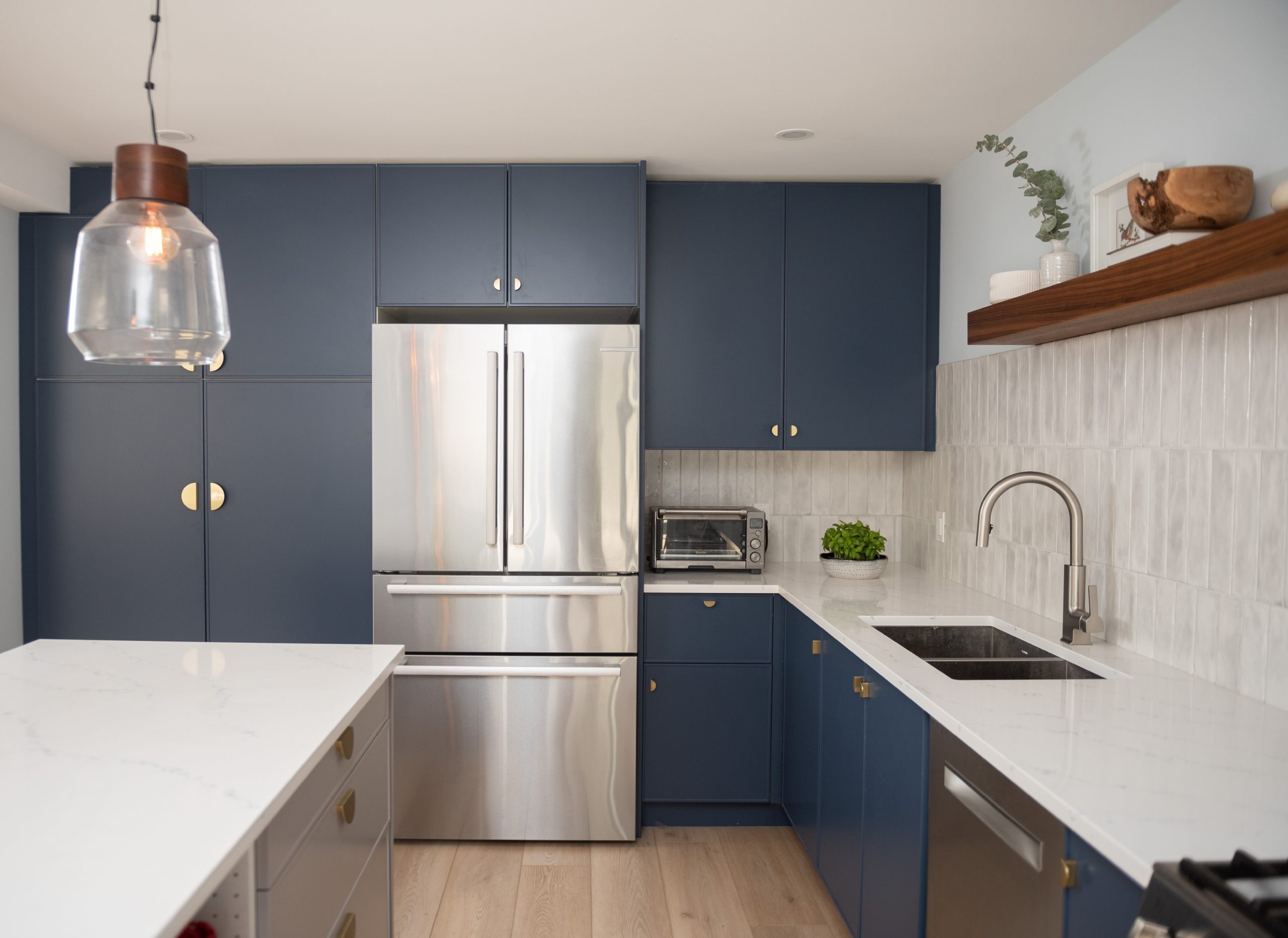 This project, completed by Hunted & Gathered Design, showcases our NILS cabinet door in Newburyport Blue and Stormy Monday.